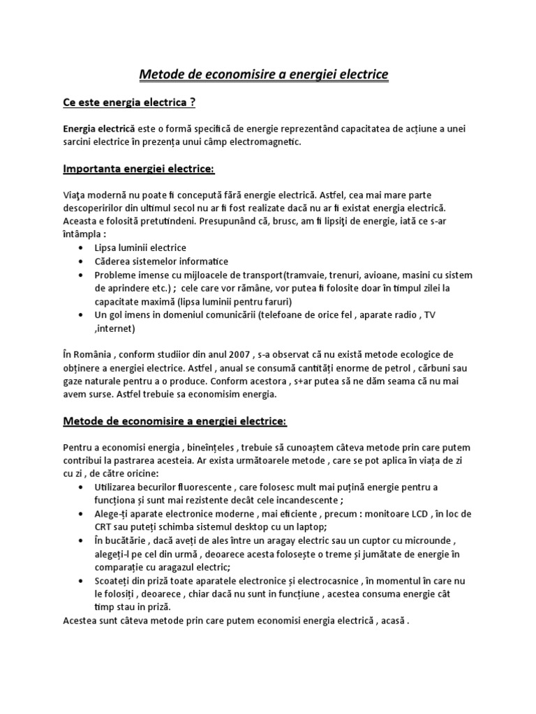 Metode De Economisire A Energiei Proiect