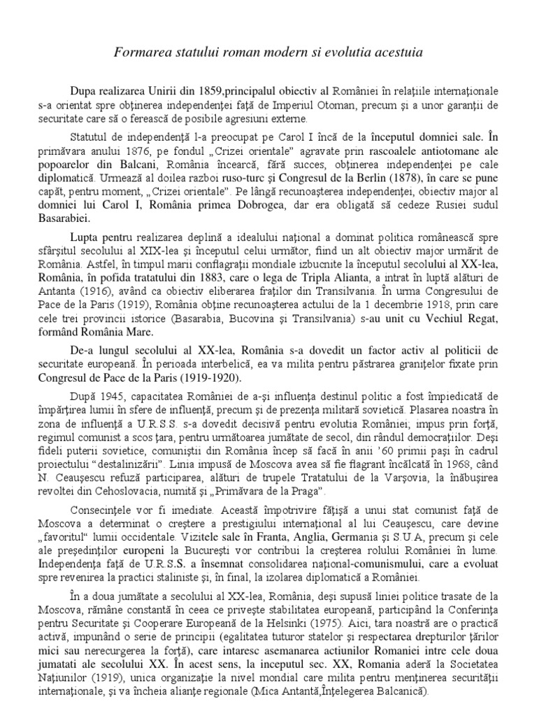 Referat Evolutia Statului Roman De La Statul Natiune La Statul Modern Sec Xix Xxi Istoria Romanilor 311872