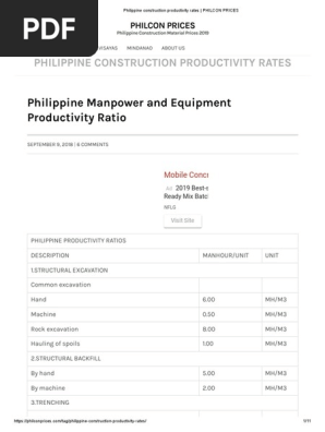 Philippine Construction Productivity Rates Philcon Prices Economics Economic Sectors