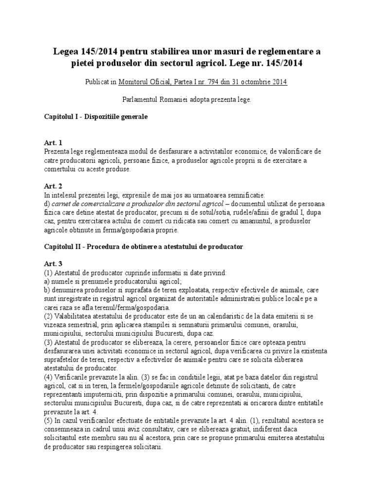 Legea Nr 145 2014 Stabilirea Unor Masuri De Reglementare A Pietei Produselor Din Sectorul Agricol Agropost