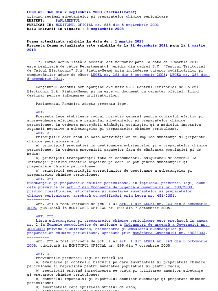 Lege 360 2003 Regim Substante Chimice Periculoase