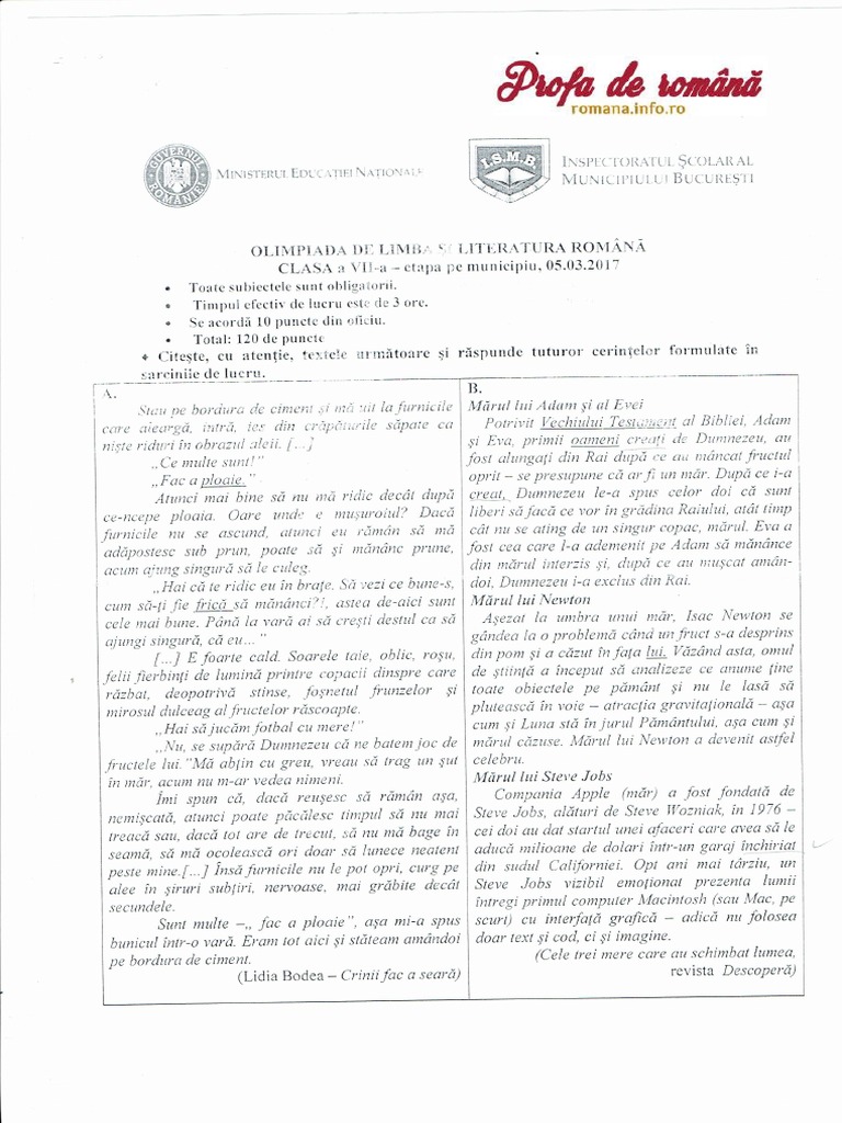 Subiecte Evaluare Naţională 2017 Romană Ce Subiecte Au Primit Elevii La Romană La Evaluare 2017
