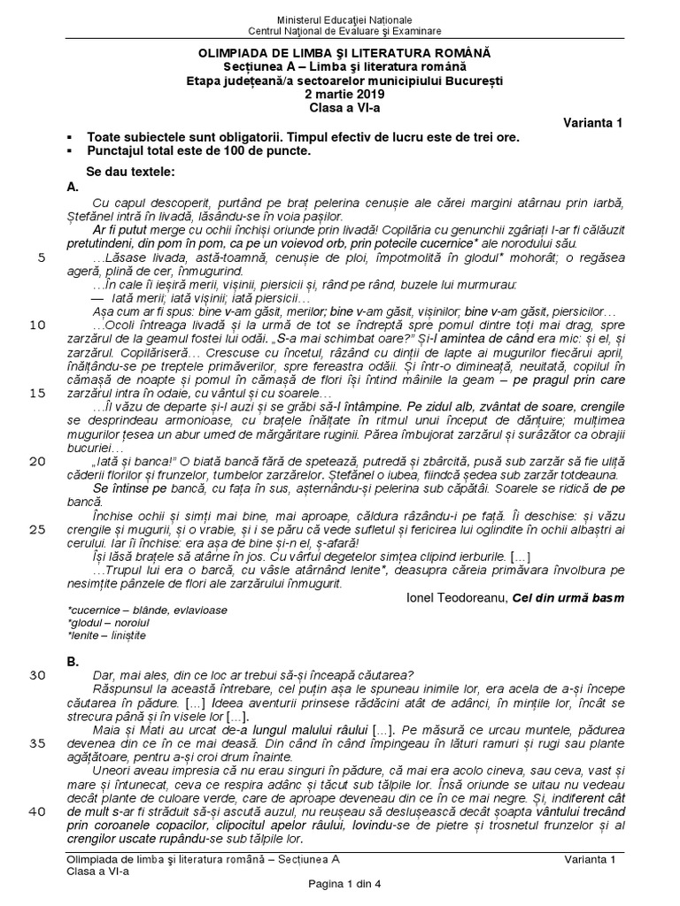 O R D I N 01 Limba Si Literatura Romană Cls V Viii 02 18 Olimpiada Națională A