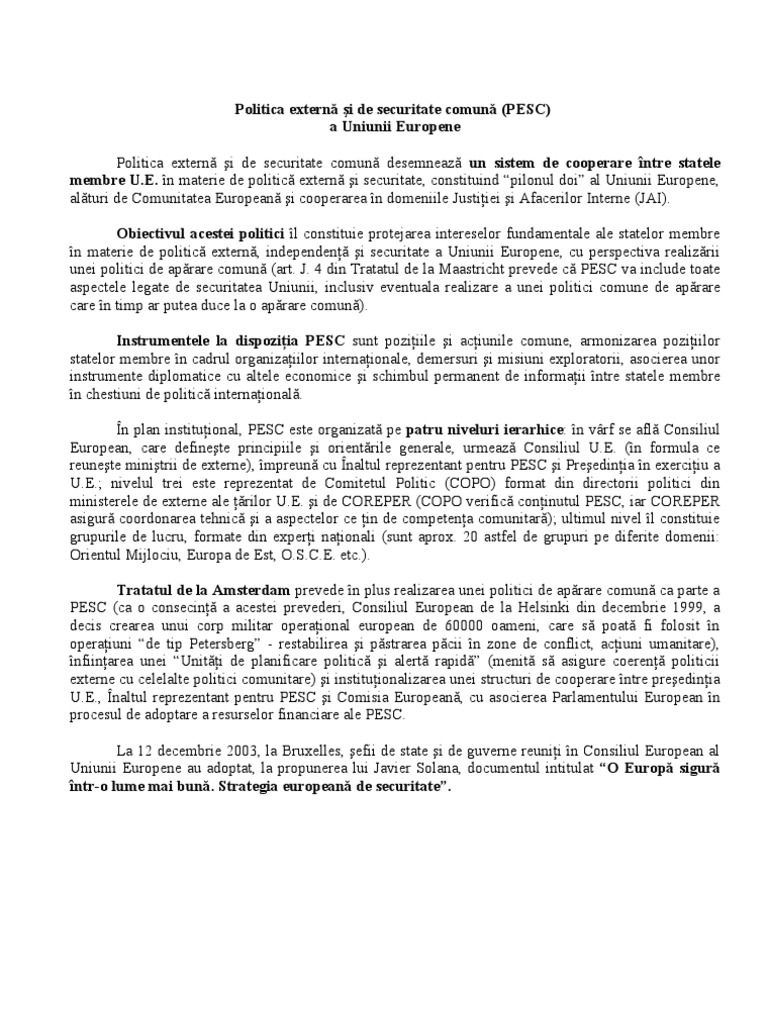 Curs Politica Externa Si De Securitate Comuna Si Politica Europeana De Securitate Si Aparare Stiinte Politice 36715