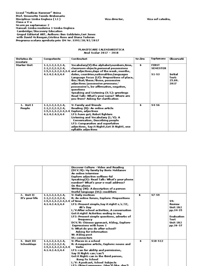 2017 2018 Grade V Annual Lesson Plan Limba Moderna 1limba Englezacambridgediscovery Educationlmhaninaby Prof Simonette Tenido Brebenariul Verb Noun
