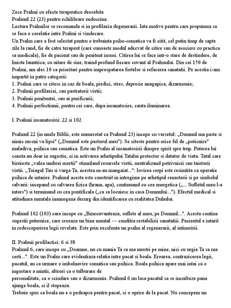Zece Psalmi Cu Efecte Terapeutice Deosebite