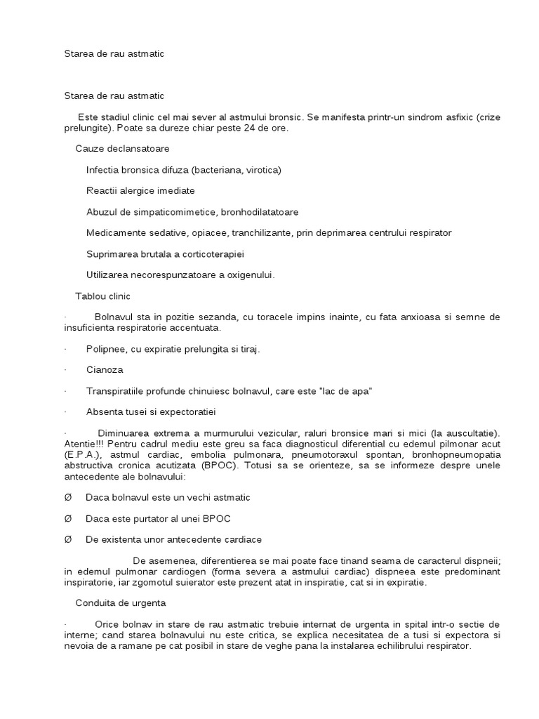 Starea De Rau Astmatic