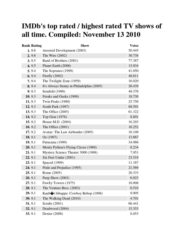 Imdb S Top Rated Tv Shows Of All Time Entertainment American Television Series